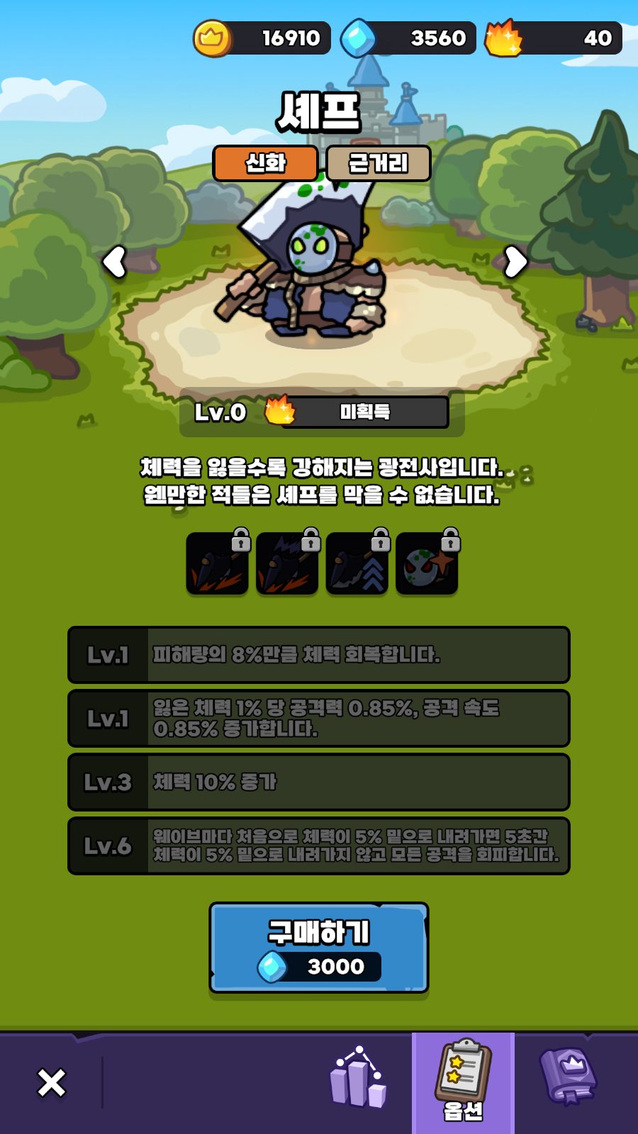 3. 산적왕 - 미야옹에게 필요한 왕의 위엄 패시브를 가지고 있어 필수!