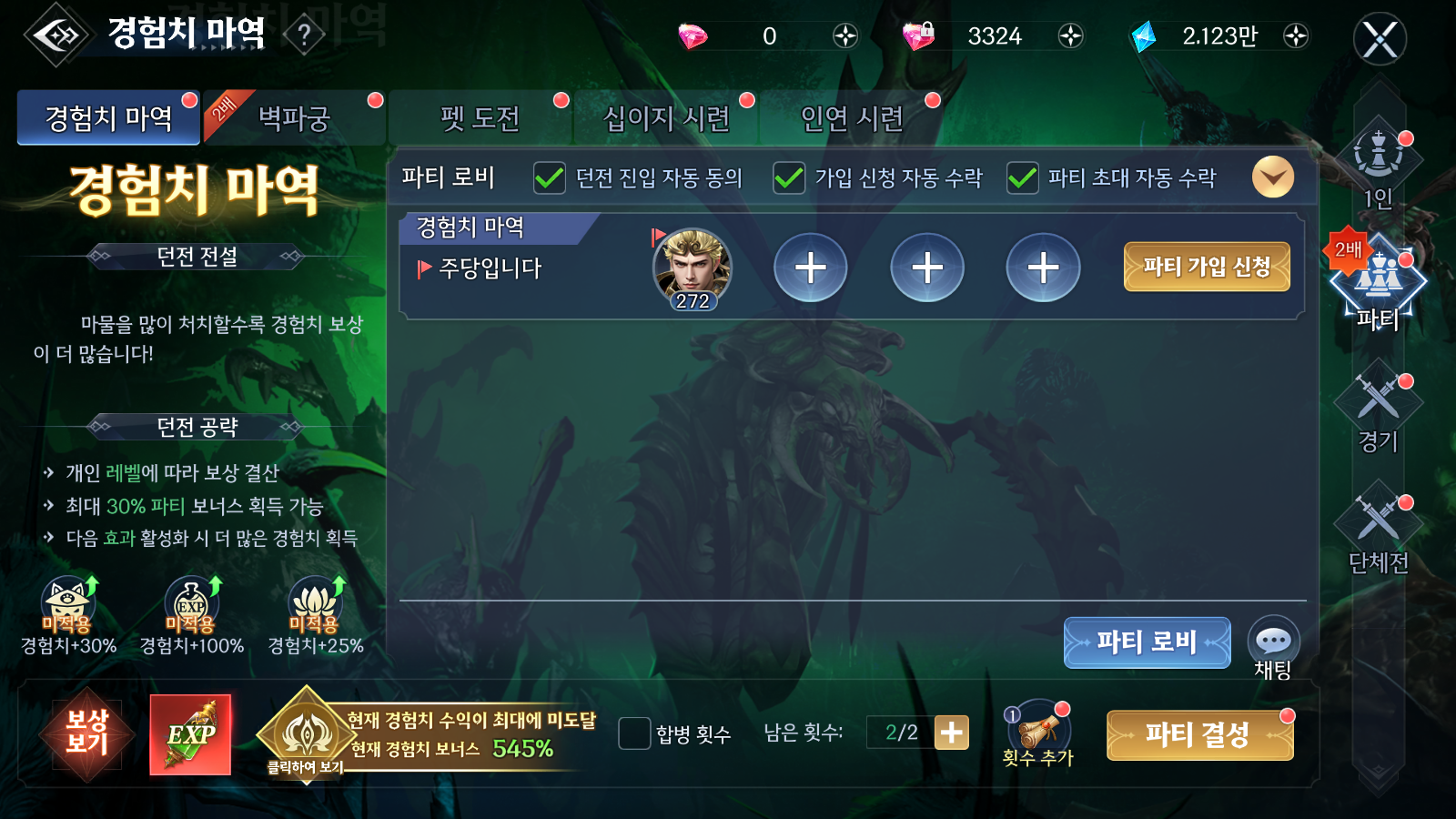 렙업을 진행하여 강력한 캐릭터를 만들 수 있다