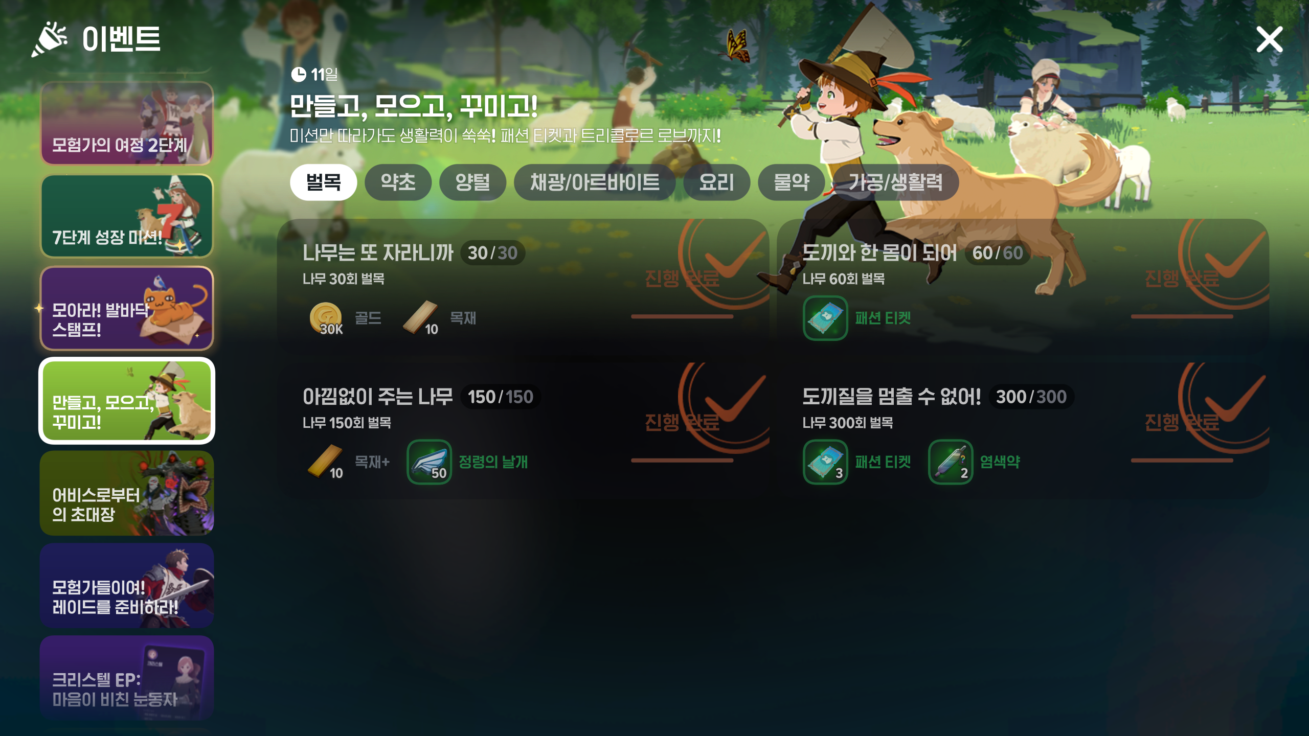 1️⃣ 마비노기 생활(채집)컨텐츠 관련 이벤트