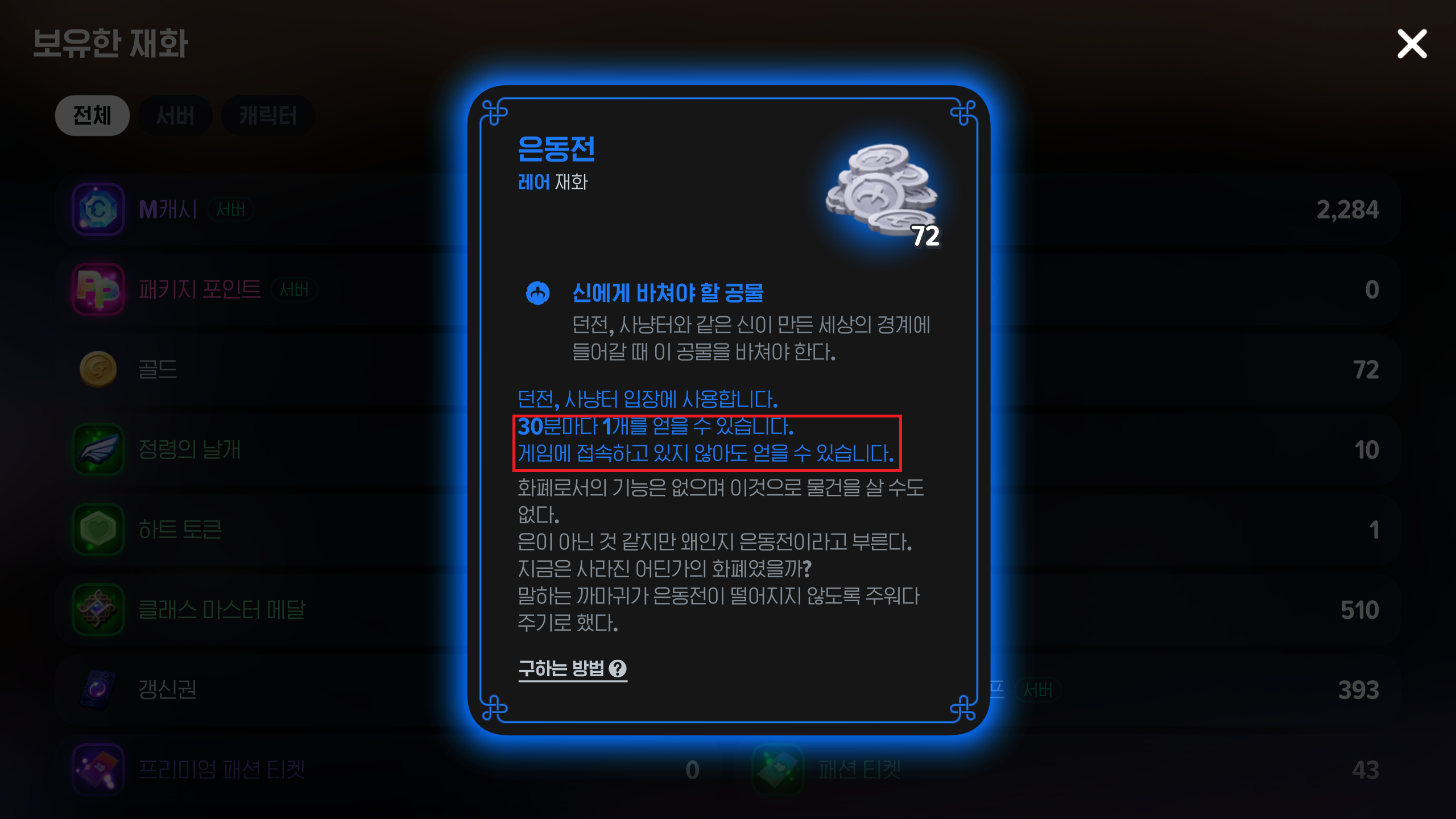 은동전 얻는 방법을
