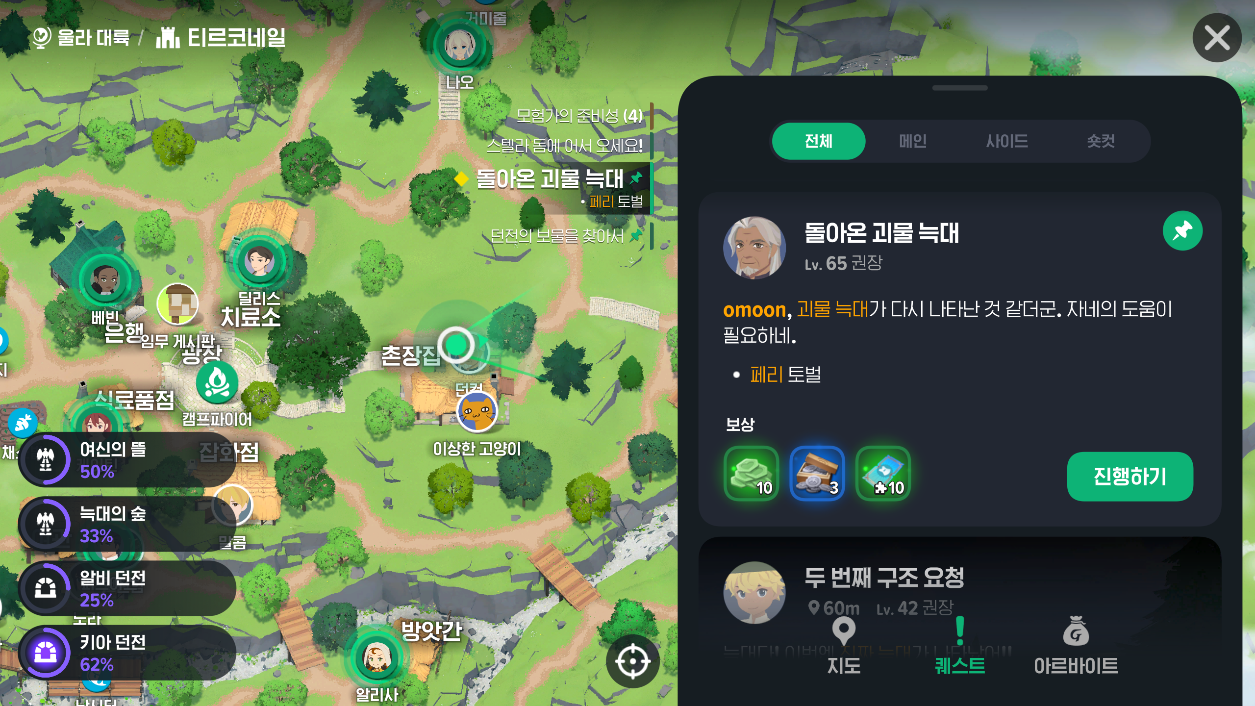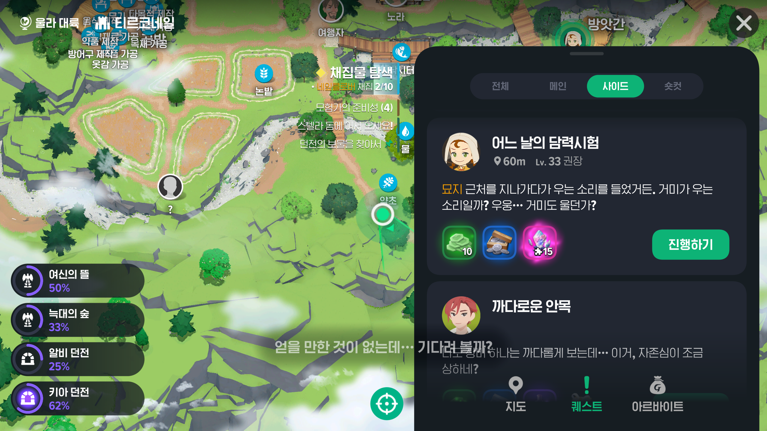 메인퀘스트와 서브퀘스트를 진행하시면