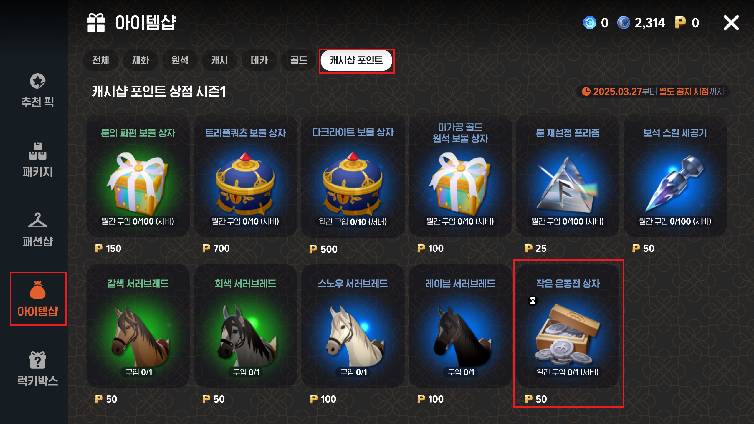 포인트로 은동전 상자를 구입하실 수 있습니다