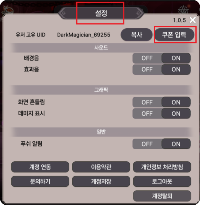 2️⃣ 눈떠보니 흑마법사 쿠폰 등록방법