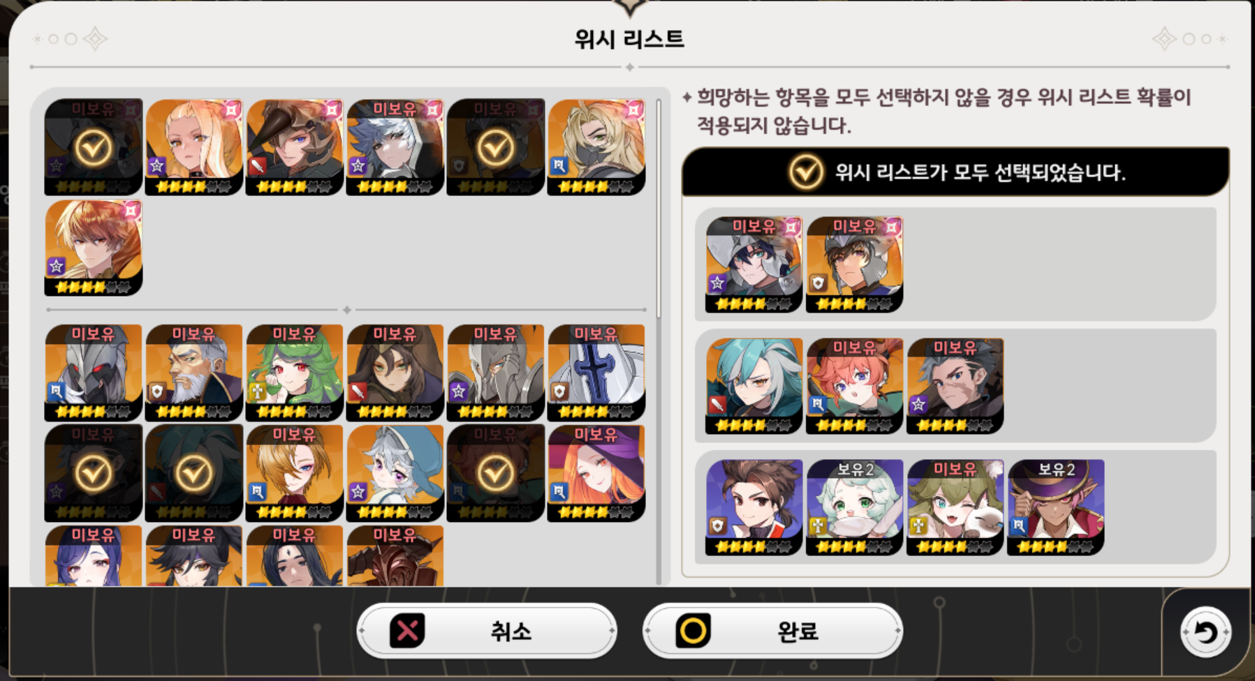 영웅 뽑기 위시리스트에 등록하면