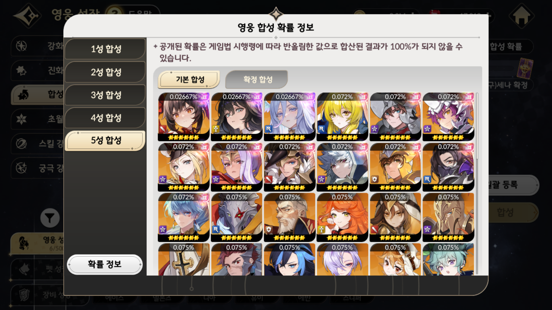 두 영웅을 합성해서 확률적으로 전설이나