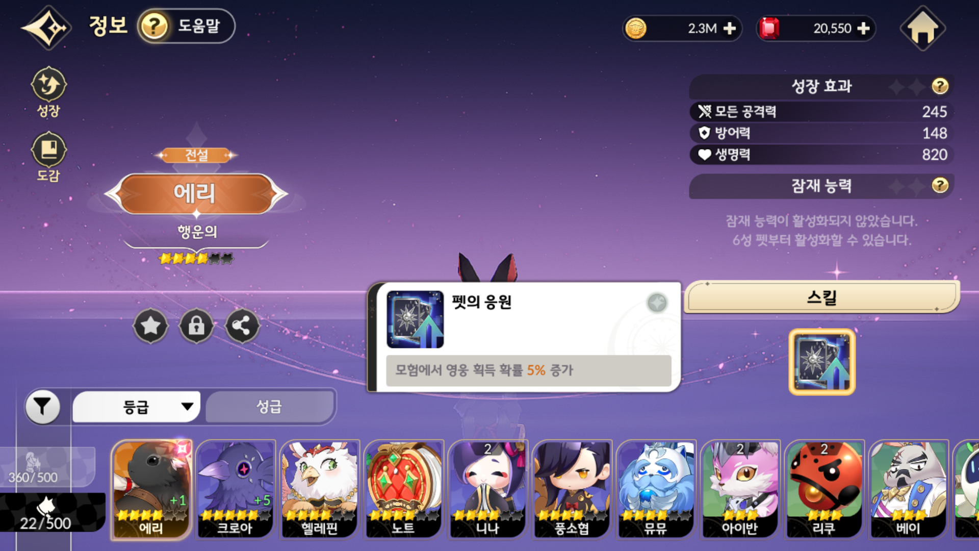 추가로 펫 중에 에리가 있으시면