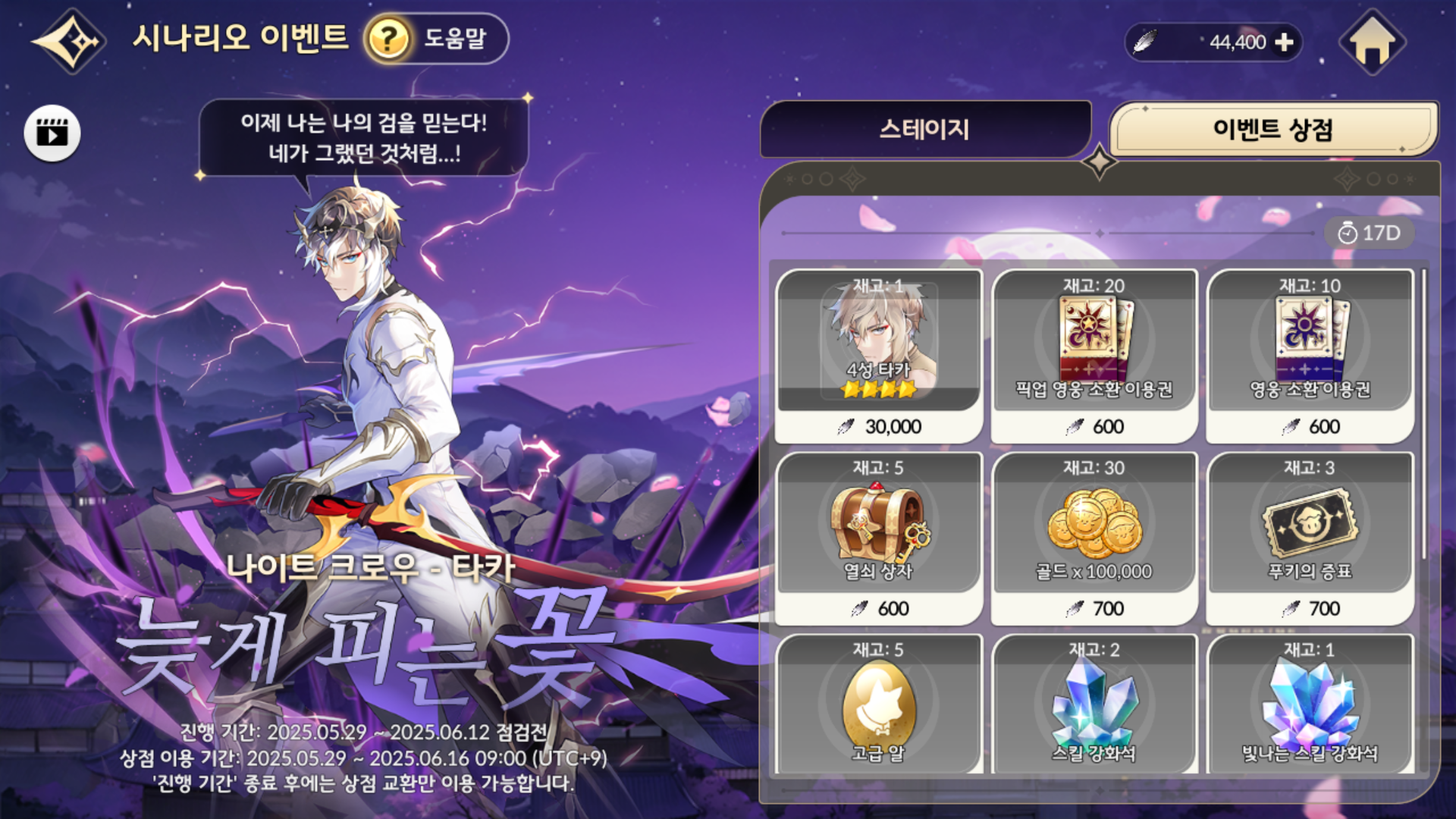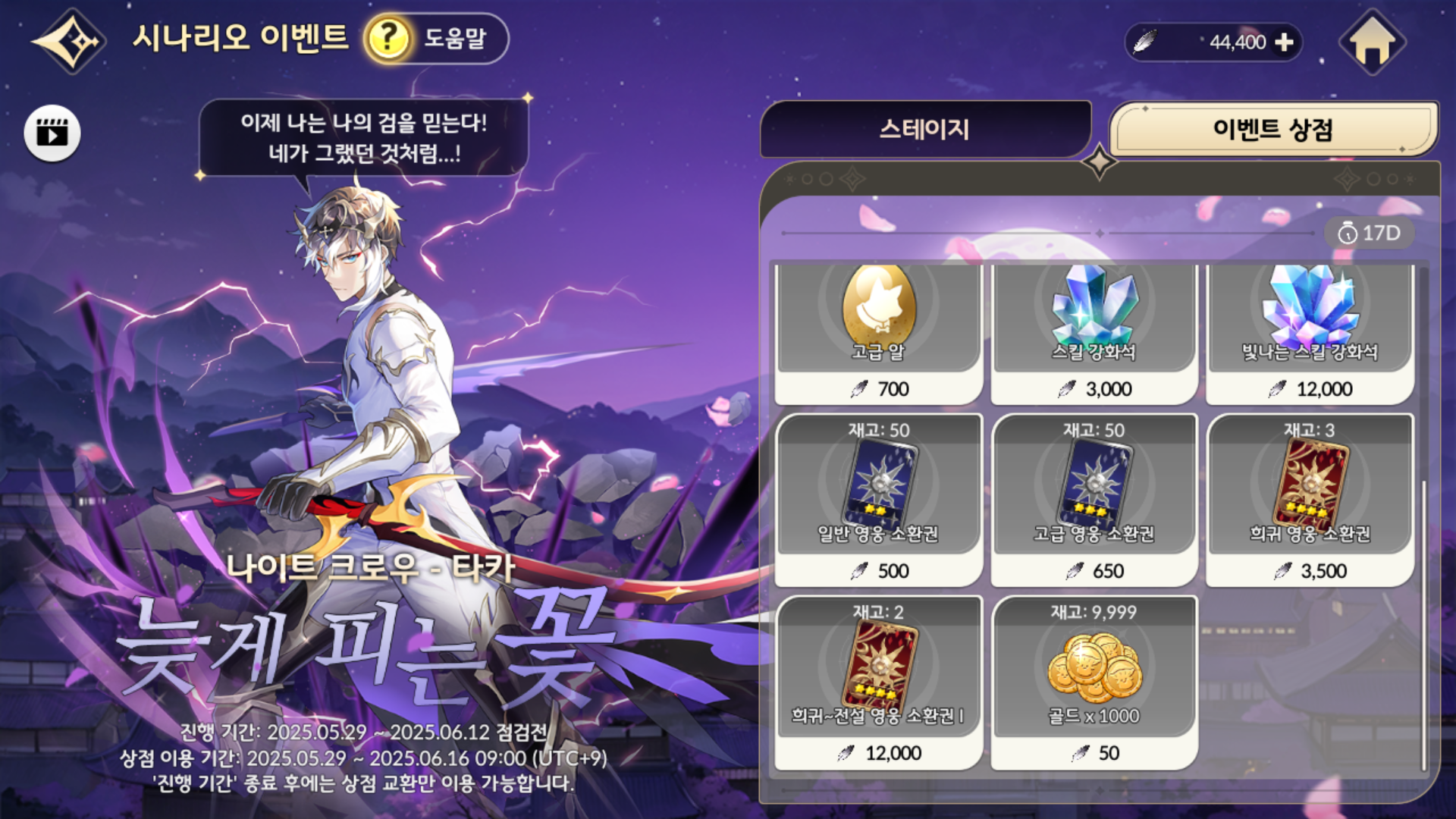 시나리오 이벤트를 꾸준히 참여하셔서