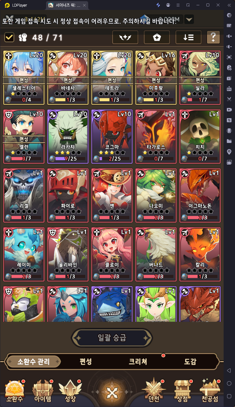 서머너즈워 러쉬를 플레이하시면
