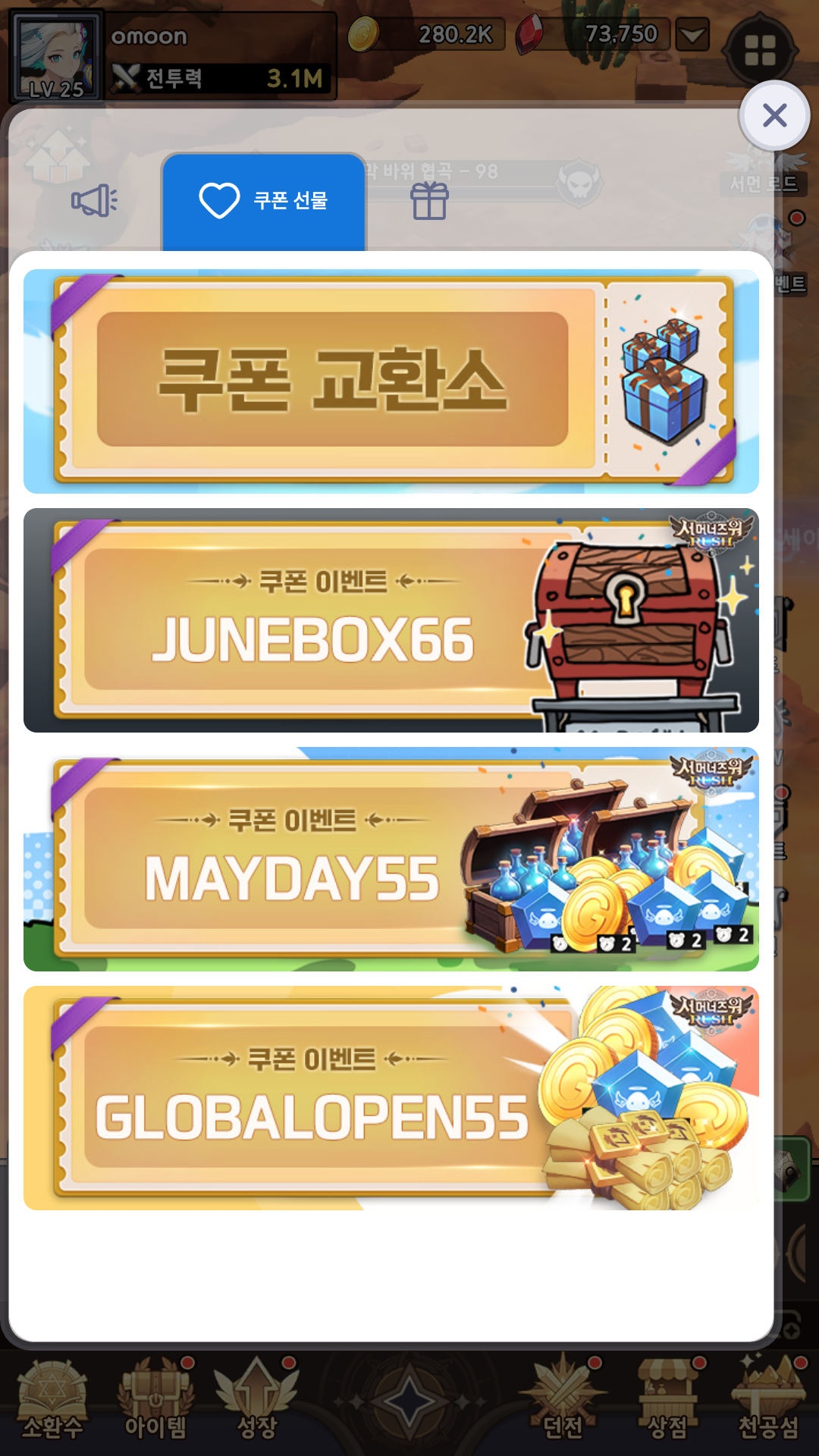 2️⃣ 서머너즈워 러쉬 최신 쿠폰 등록 방법