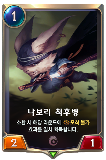 나보리 음모자 - 버프를 주는 챔피언이나 죽을 것 같은 챔피언을 2마나로(많이 적은 마나) 귀환을 시키면서 빈자리를 채워줍니다.