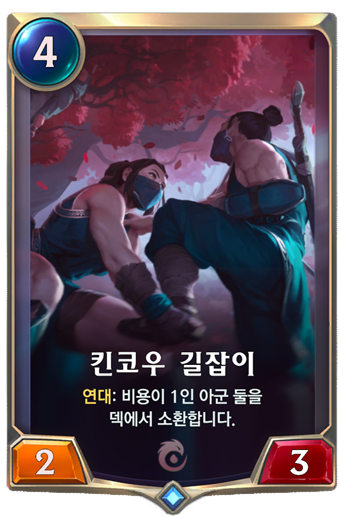 킨코우 길잡이는 너무 좋습니다 이 덱에서는 옆에 있는 나보리 척후병과 전조의 매를 소활 수 있는데 역전을 하거나 상대 추종자가 너무 많아 방어를 해야 할 때 사용하면 아주 좋습니다!!