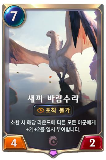 새끼 바람수리 - 포착 불가 추종자가 3명 정도 있다면 소환하여 마무리를 지을 수도 있는 카드입니다.