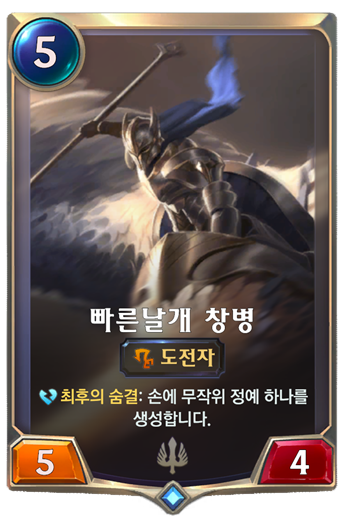 빠른날개 창병은 제네비에브를 한장만 사용할 수 있어 부족한 부분을 채우기 위해서 사용하고 있지만 제네비에브 보다는 아쉬운 부분들이 있습니다.