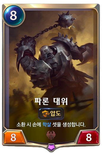 파론 대위는 이번에 효과가 바뀌면서 많이 좋아졌으며 후반에 많이 사용하는 카드인데 후반에는 마나가 많아 학살을 연속으로 사용하기에도 좋습니다.