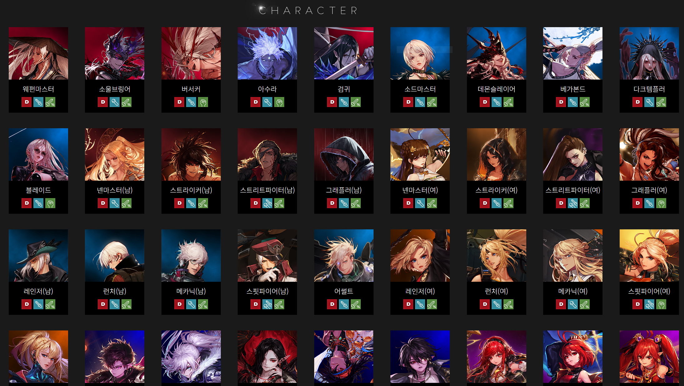 던파 직업은 한 페이지에 캡쳐도