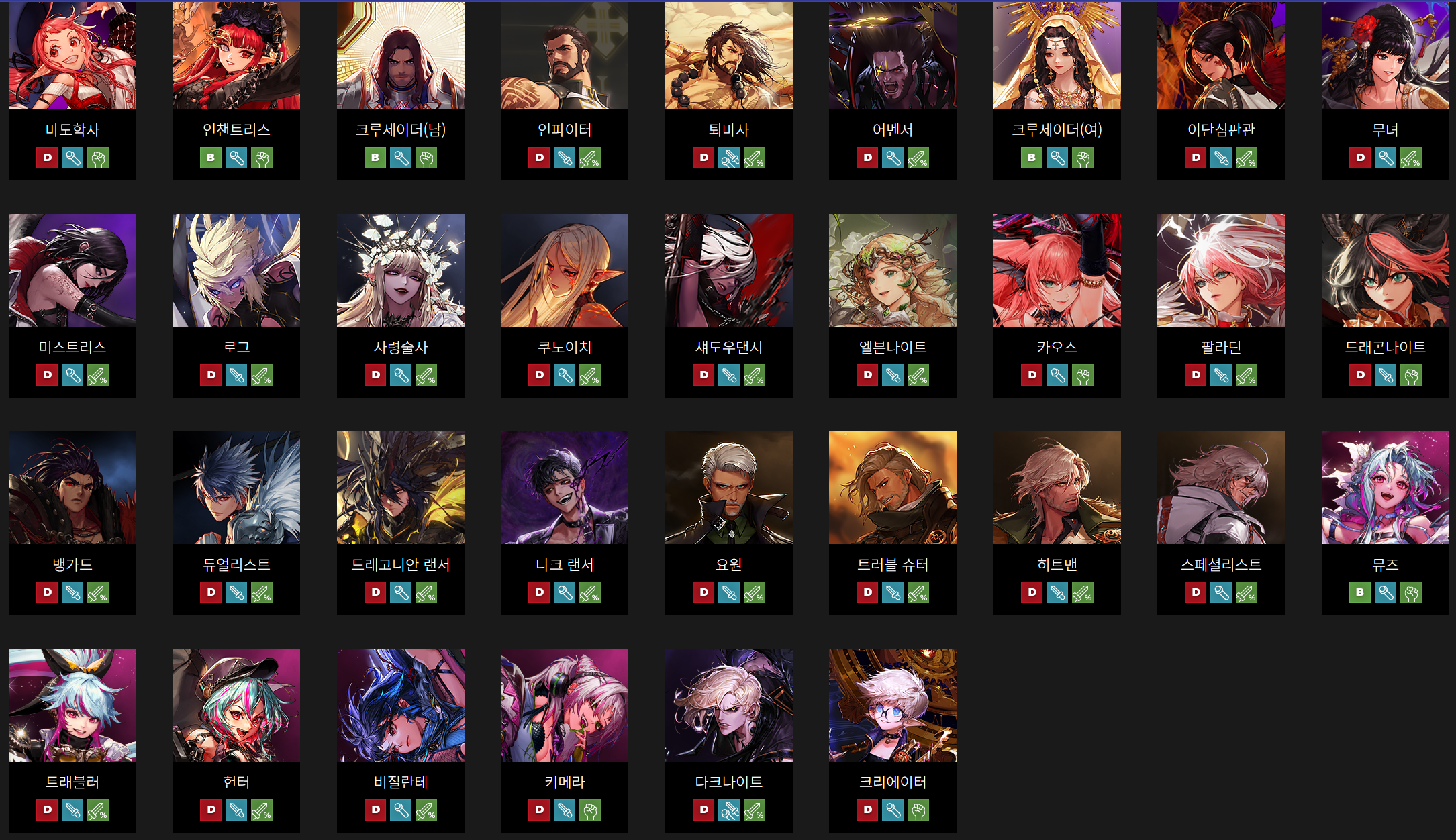 🎁던파 직업 계급표🎁