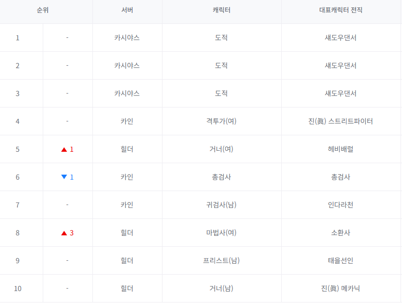6월 10일 기준으로 필자가 던파 직업에